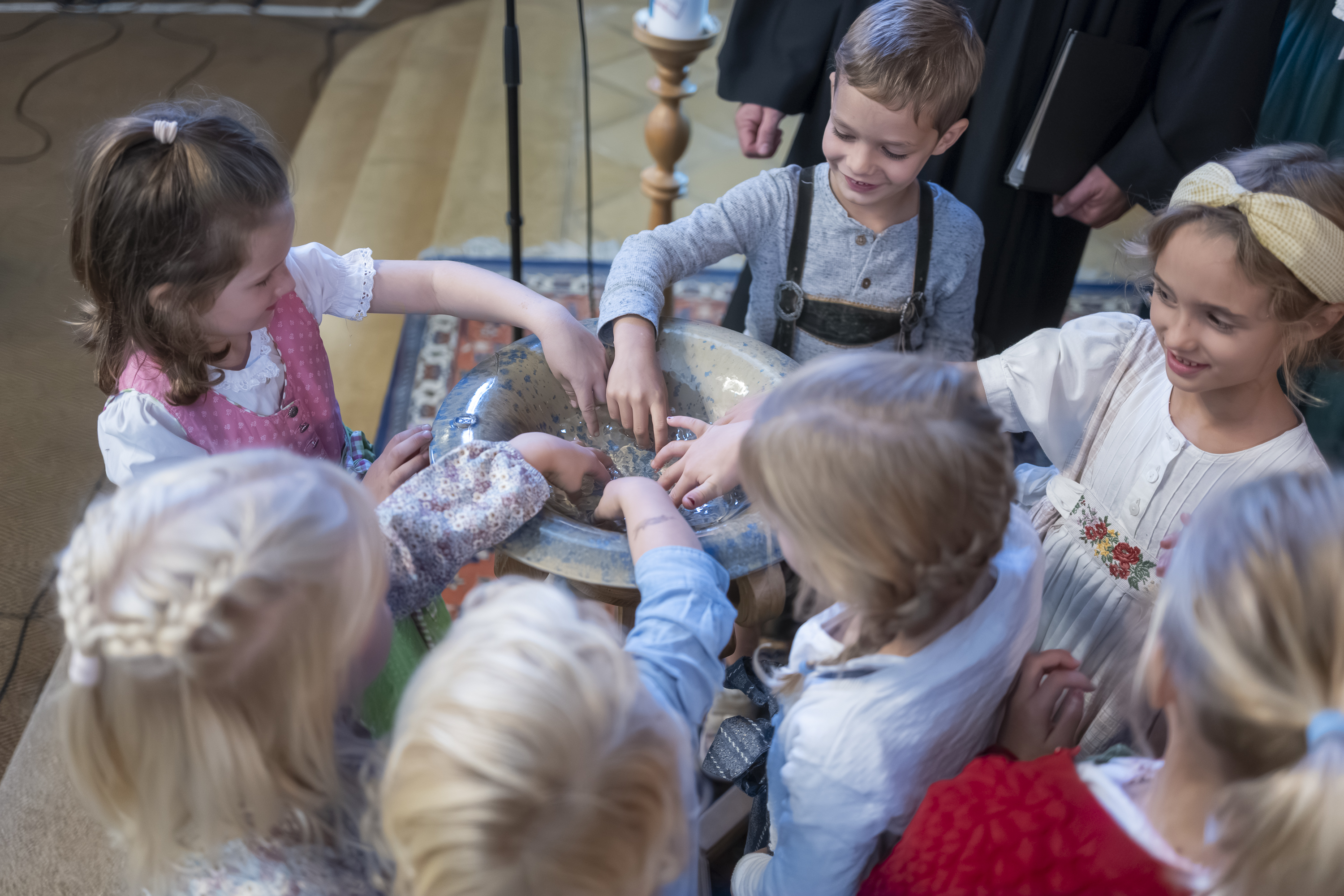 Was geschieht im Tauferinnerungskurs und im Tauferinnerungsgottesdienst?Meistens können sich die Kinder nicht mehr an ihre Taufe erinnern, da sie noch zu klein waren. In der gemeinsamen Vorbereitung erfahren die Kinder auf kreative und spielerische Weise, was Taufe bedeutet. Der Tauferinnerungsgottesdienstwird als Familiengottesdienst gefeiert. Im Zentrum steht die Tauferinnerung verbunden mit der persönlichen Segnung jedes einzelnen Kindes. Der Taufspruch wird vorgelesen und die Taufkerne an der Osterkerze entzündet.