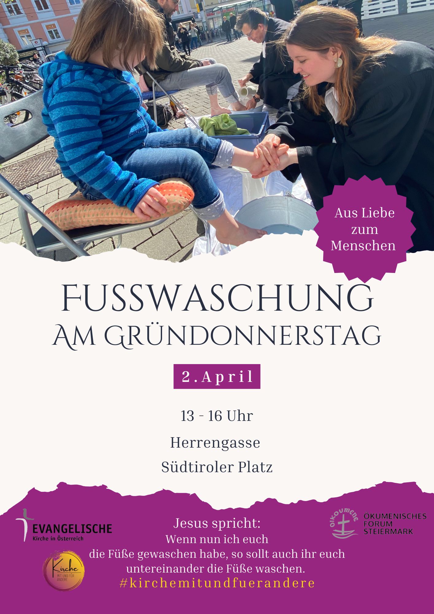 Fußwaschung am Gründonnerstag, den 2. April, von 13-16 Uhr. Herrengasse